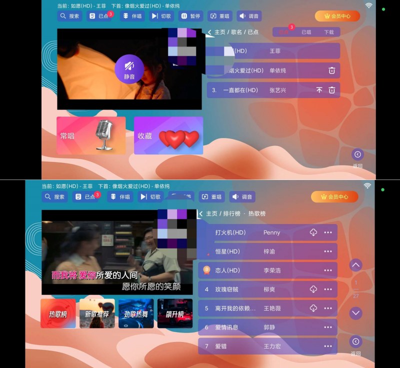 部分歌曲支持打分支持手机点歌